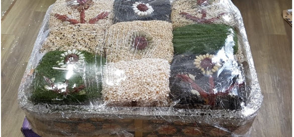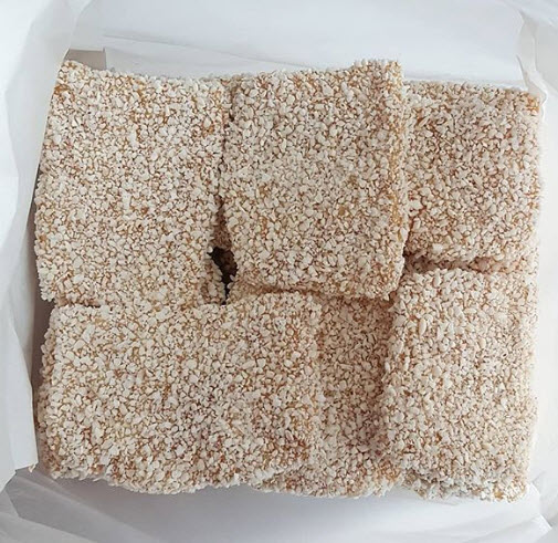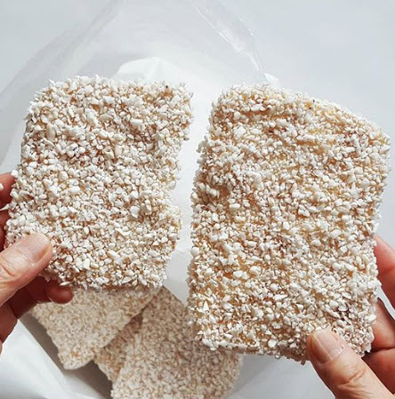 “명절이면 선물로 많이 주고받는 유과, GMO 논란에서 자유롭지 못한 기름에 튀기지 않은 유과를 먹고 싶어서 도옥전통자갈한과를 주문했다. 달궈진 자갈에 구운 유과로 네모 납작한 크기가 작은 것도 있고, 큰 것도 있다. 쌀조청이 가득 묻어있음에도 과한 단맛이 아니라 계속 먹어도 질리지 않는 달콤한 맛이다.