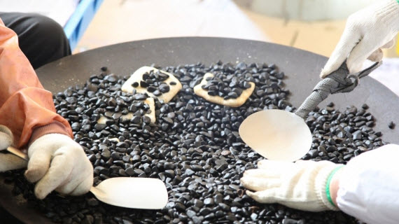 이분이 말하길 도옥전통자갈한과는 달궈진 자갈에 구운 유과로 먹어도 질리지 않는 단맛이 잏ㅆ다고 한다. 더군다나 기름에 튀기지 않아서 질리지 않고 먹을 수 있고, 바삭한 맛으로 더욱 즐길 수 있는 과자라고 한다.